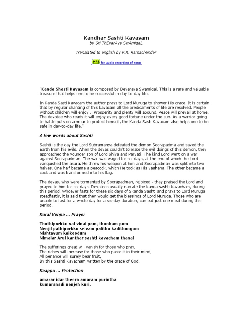 Kandha Sasti Kavasam Pdf Download In English : You can choose the kanda sasti kavasam english lyrics apk version that suits your phone, tablet, tv. Kandha Sasti Kavasam Pdf Download In English : Kanda sasti kavasam is a song composed by devaraya swamigal.